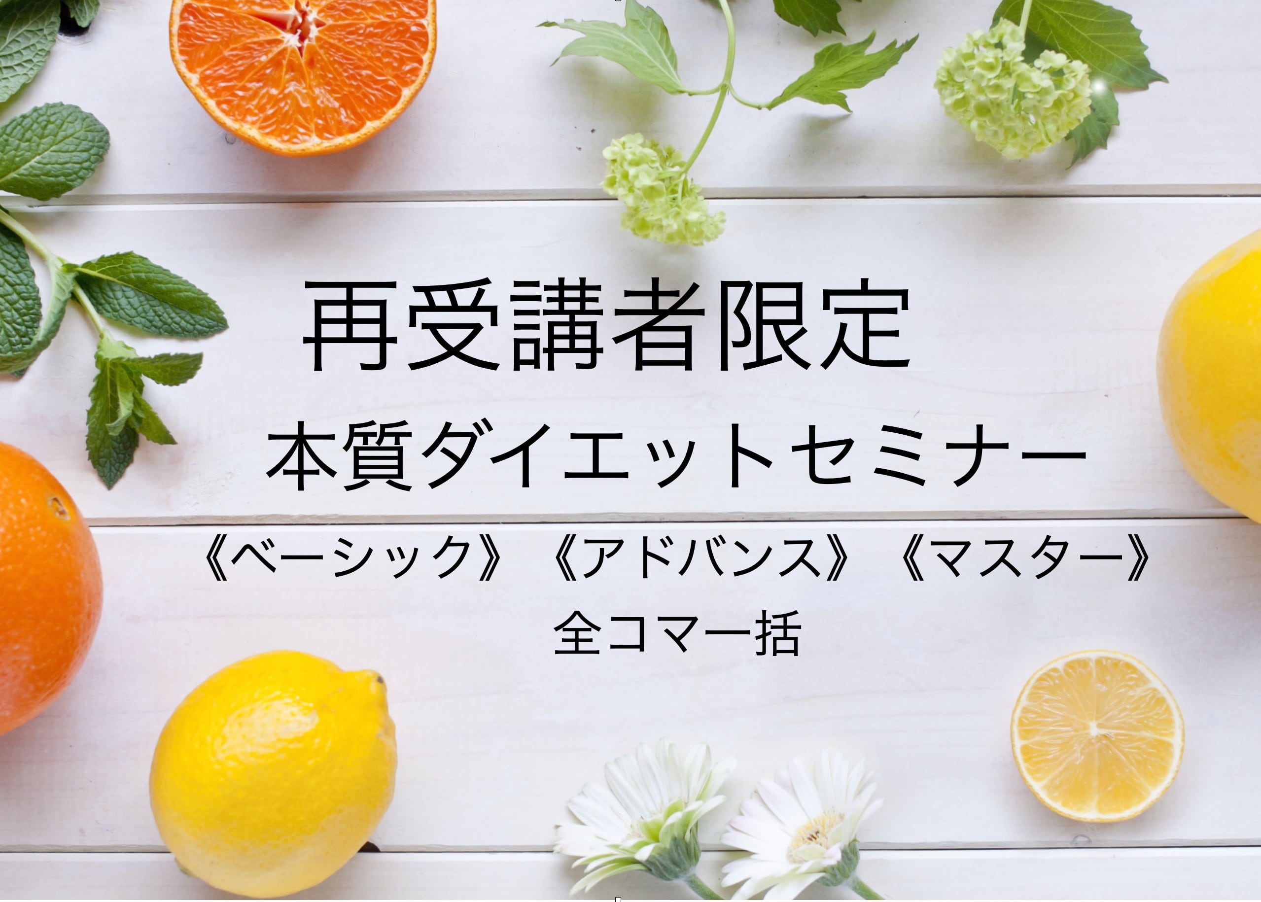 会員・再受講者限定:本質ダイエットセミナー《ベーシック》《アドバンス》《マスター》全コマ一括